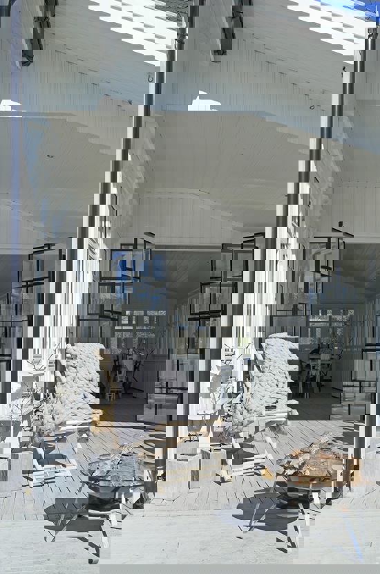 Paret savnet muligheten til å kunne bruke uterommet større deler av året. Helst ønsket de seg en plass som kunne brukes mer eller mindre hele året, og hvor de kunne feire merkedager med hele storfamilien samlet. Resultatet ble en delikat utestue!